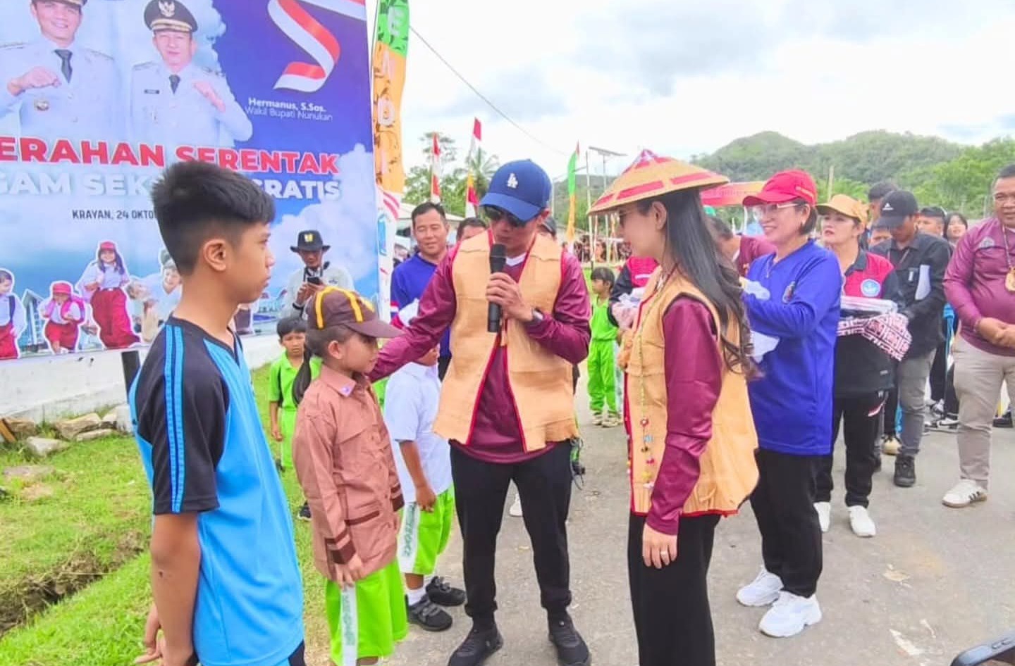 Penyerahan seragam gratis ini dilakukan secara simbolis oleh Bupati Irwan di wilayah dataran tinggi Krayan, Jumat (24/10/2025).