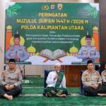 BULUNGAN, klikkaltara.id – Polda Kalimantan Utara menggelar peringatan Nuzulul Qur’an 1447 Hijriah di Masjid Nur Aryaguna Mapolda Kaltara, Senin (9/3/2026). Kegiatan ini menjadi momentum untuk meningkatkan keimanan, ketakwaan, serta profesionalisme